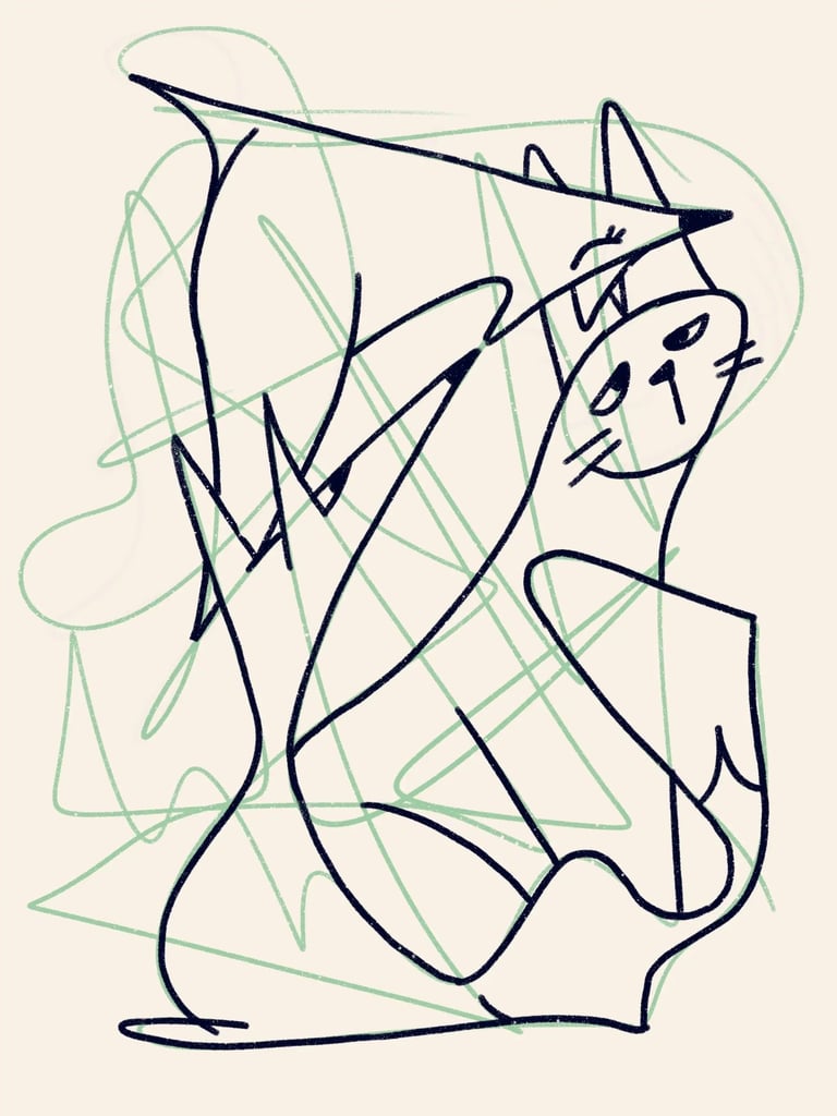 This artwork starts from a random abstract scribble. Nothing planned or pre-determined, just me discovering what the lines secretly want to be.