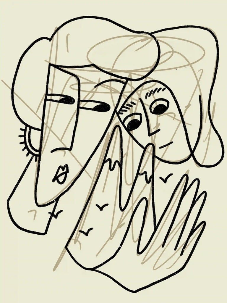 This artwork starts from a random abstract scribble. Nothing planned or pre-determined, just me discovering what the lines secretly want to be.