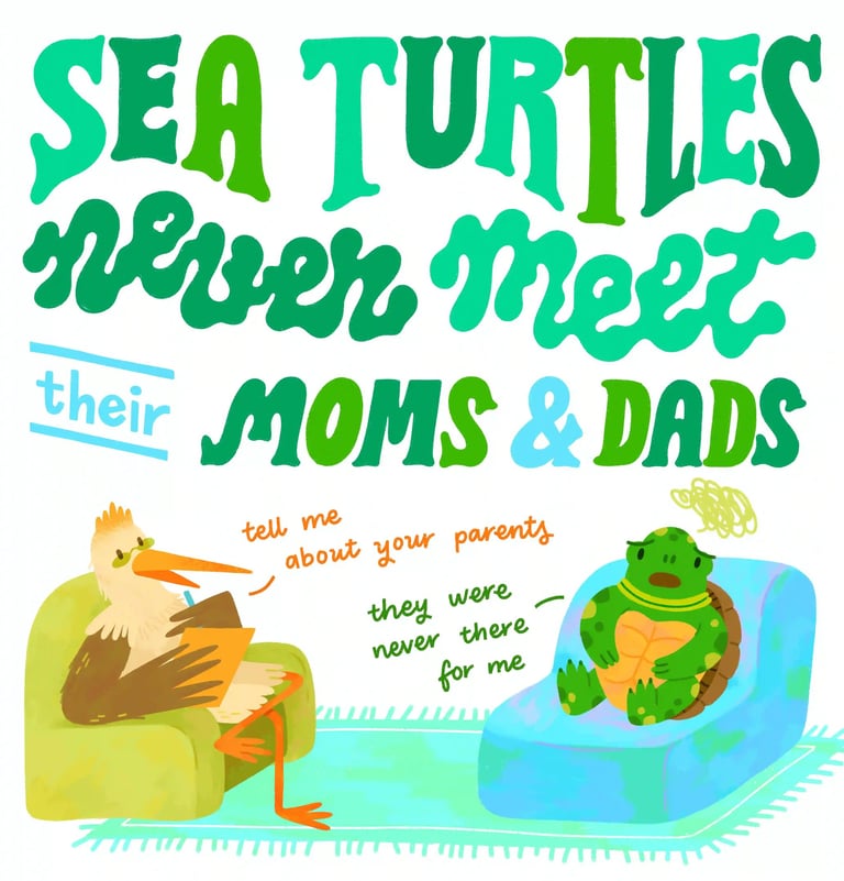 Mama turtles lay eggs and dip, leaving baby turtles to fight their way to survive... only to repeat history years later.