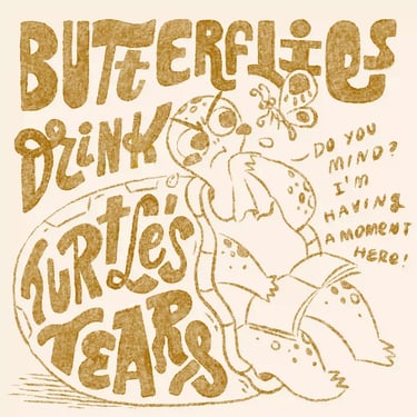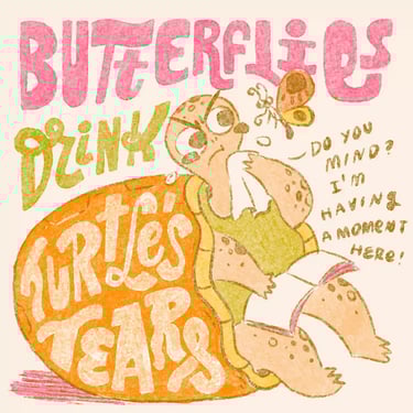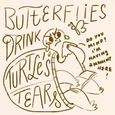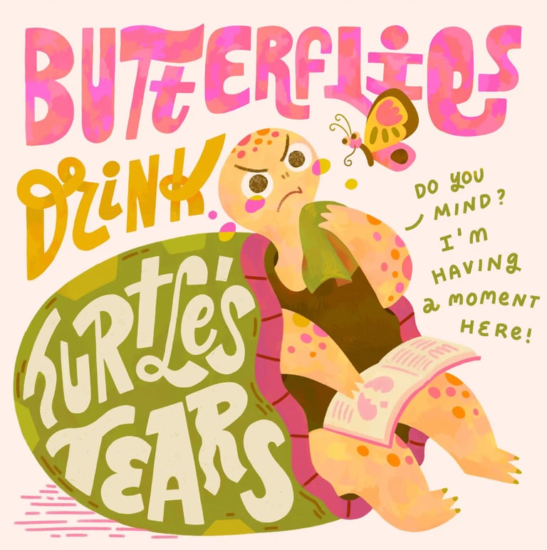 In the Amazon, when butterflies run low on salt and minerals, they gather around turtles' heads to sip their tears. It's called tear-feeding – or lachryphagy, if you're feeling sciency. Apparently, this salty snack is an essential supplement for the butterflies' nectar-based diet.